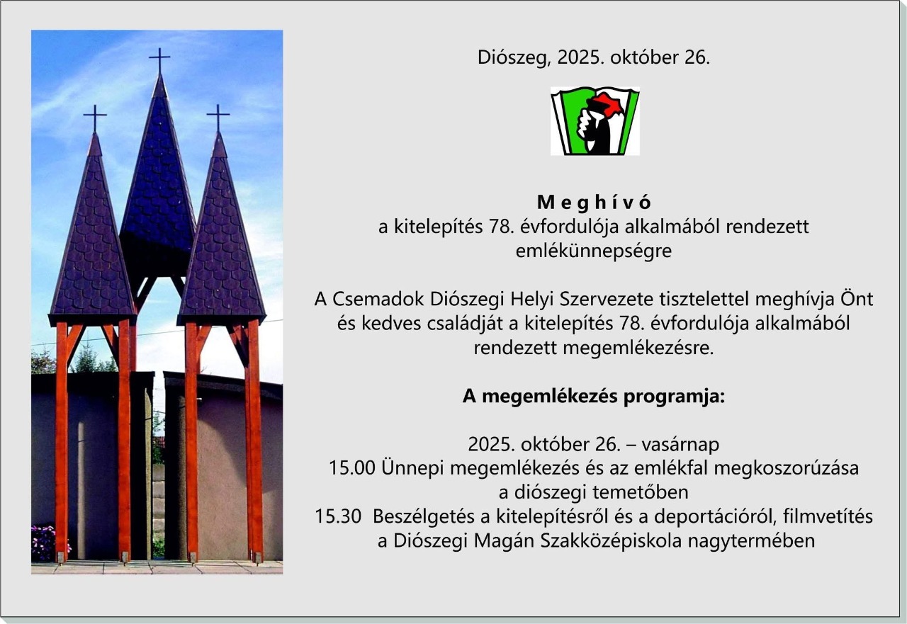 A kitelepítés 78. évfordulójáról emlékeznek meg Diószegen